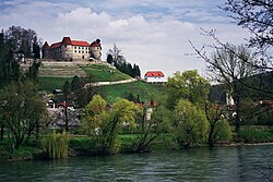 | Sevnica Castle with the Lutheran cellar above Sevnica , Slovenia. In the foreground, the River Sava. | Übertragen aus sl.wikipedia nach Commons. | Marijan Latin at sl.wikipedia | Datei:Sevniški grad in lutrovska klet.JPG | |