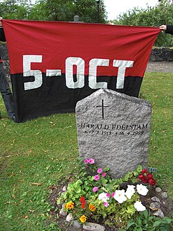 | The grave of Harald Edelstam during the celebration of his heoric contributions to helf people during the military coup in Chile | Eigenes Werk | Adville | Datei:The grave of Harald Edelstam 11 september 2010.JPG |
