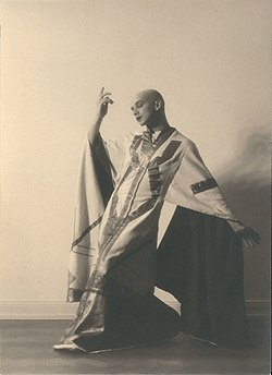| Eine Fotografie des 1905 in Hannover geborenen und 1944 in Weißrussland gefallenen Will Burgdorf ; der Hannoveraner hatte sich schon in den 1920er Jahren auf Portraitfotografie spezialisierte, insbesondere von anderen Protagonisten der hannoverschen Künstlerszene. In seinen Ateliers , Anfangs in der Harnischstraße 6, dann am Lister Platz 3 sowie in der ' Podbielskistraße 12 ließen sich jedoch auch zahlreiche Privatpersonen, etwa Eltern mit ihren Kindern fotografieren. Die Aufnahme hier zeigt denTänzer und Choreografen Harald Kreutzberg ... | Private Sammlung, ausgestellt im Theatermuseum Hannover : https://www.schauspielhannover.de/index.php?f=07_seiten&ID_Seite=308 | Will Burgdorf | Datei:Will Burgdorf Fotografie Harald Kreutzberg.jpg |