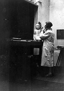 | Holzskulptur "sitzendes junges Mädchen" | Übertragen aus de.wikipedia nach Commons. Photograph by original uploader | Der ursprünglich hochladende Benutzer war Phoibus in der Wikipedia auf Deutsch | Datei:Holzskulptur sitzendes russisches Mädchen 1930.JPG | |