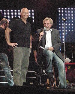 | Austrian presenter Peter Rapp (right) presenting Harry Kopietz, 'inventor' of Donauinselfest, on occasion of 25th anniversary of that festival. | Eigenes Werk | I-Me-Mine (lookup: Beatles ;) | Datei:Donauinselfest 20080905 (25th anniversary) - 'festival inventor' Harry Kopietz (left) presented by Peter Rapp.jpg | |