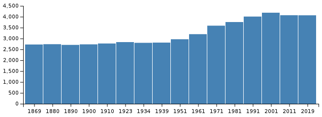 1991 hatte die Gemeinde laut Volkszählung 4011 Einwohner, stieg dann 2001 auf 4190 und fiel 2011 auf 4070 und 2021 auf 4042 Bewohner ab.[9]