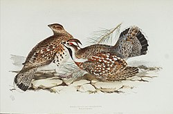| Hazel Grous or Gelinotte, Bonasa bonasia . Drawn from Nature and on Stone by John and Elizabeth Gould. 4 pl. 9 (as Bonasia Euroaea ). | Dieses Bild stammt aus der Digitalen Bibliothek Gallica und ist verfügbar unter der ID btv1b23000047/f9 | John Gould | Datei:Gelinotte.jpg | |