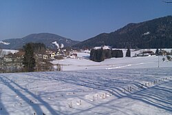 | Im Hintergrund links der Patscha, rechts der Wolfsattel (beide Berge), dazwischen die Weizklamm | Eigenes Werk | Erwin 2010 | Datei:Haufenreith Dorf im Winter.jpg | |