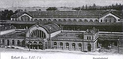 | 1903 Erfurter Hauptbahnhof | Hasn-Joachim Kirsche: Reichsbahndirektion Erfurt | Foto: Sammlung Hommel | Datei:Erfurt-Hbf-1903.jpg |