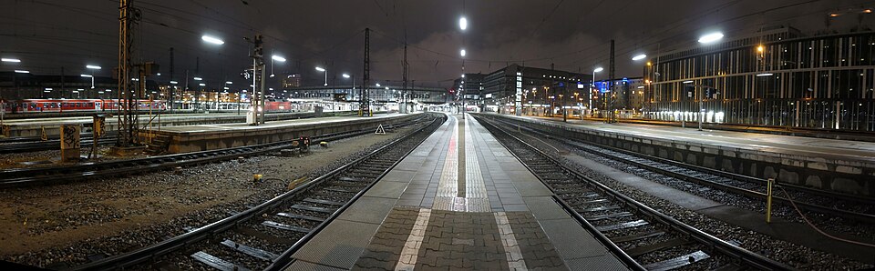 | Deutschland, Bayern, München, Hauptbahnhof bei Nacht, Gleis 12+13 äußerstes Ende, Blick auf Hauptgebäude | Eigenes Werk | Richard Huber | Datei:Munich Central Station Track 12-13.jpg | |
