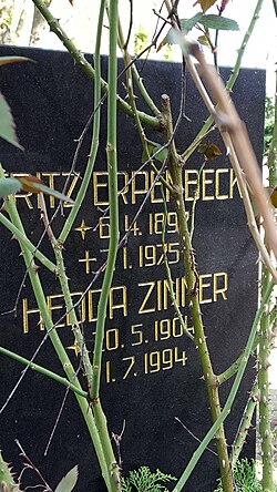 | Grab von Fritz Erpenbeck und Hedda Zinner auf dem Friedhof der Dorotheenstädtischen und Friedrichswerderschen Gemeinden in Berlin-Mitte | Eigenes Werk | Z thomas | Datei:Friedhof der Dorotheenstädt. und Friedrichwerderschen Gemeinden Dorotheenstädtischer Friedhof Okt.2016 - 16.jpg |