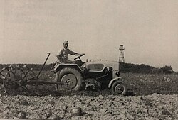 | Ein Bauer bei der Kartoffelernte neben dem Eisernen Vorhang in Heiligenbrunn (Foto aufgenommen in den 1950ern oder 1960ern). | Eigenes Werk | Kirigroeller | Datei:Eiserner Vorhang Heiligenbrunn.jpg |