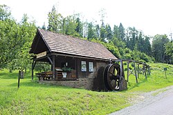 Den Einstiegspunkt in die Heiligengeistklamm in Schloßberg bildet die Spitzmühle, eine nach alten Plänen wieder errichtete Schauwassermühle. Von dort folgt der Weg dem Heiligengeistbach.