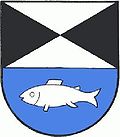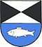 - „Im geteilten Schild das obere Feld von Silber und Schwarz schräggeviert, das untere blaue Feld mit einem silbernen Fisch belegt.“