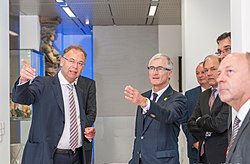 | Minister President Geert Bourgeois visiting Heimo Scheuch at Wienerberger Headquarters in Vienna | Eigenes Werk | Uwe Strasser (Wienerberger AG) | Datei:Heimo Scheuch and Minister President Geert Bourgeois.jpg |