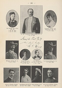 Nachdem seine erste Frau gestorben war, heiratete Göring am 26. Mai 1884 in London Franziska Tiefenbrunn (* 21. April 1859 in München; † 15. Juli 1923 ebenda). Mit ihr hatte er weitere fünf Kinder: