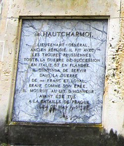 | Ehrentafel für Heinrich Karl Ludwig Herault de Hautcharmoy (1689-1757) am Obelisken in Rheinsberg | Eigenes Werk | Klabauter2 | Datei:HeinrichKarlLudwigHautcharmoy.JPG |