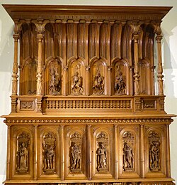 | Prunkbuffet aus Eichenholz der Firma Heinr. Pallenberg, um 1900, Köln (MAK) | Eigenes Werk | SpacePen | Datei:Pallenberg Prunkbuffet Detail 3.jpg | |