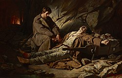- Ein frühes Gemälde von 1886 mit dem polnischen Titel W katordze, Öl auf Leinwand, 114 × 178 cm, ist im Nationalmuseum Krakau ausgestellt.