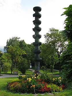 - Skulptur am nördlichen Brückenkopf der Freiburger Brücke, Innsbruck, 1984[11][12]