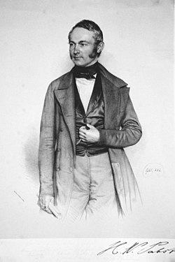 | Heinrich Wilhelm Pabst (1796-1868), deutscher Agrarwissenschaftler. Lithographie von Franz Eybl, 1852 | Eigenes Foto einer Originallithographie der Albertina (Wien) | Franz Eybl (1806-1880) | Datei:Heinrich Wilhelm Pabst Litho.jpg | |