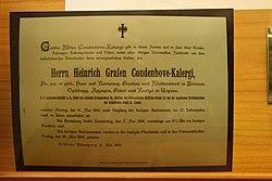 Todesanzeige von de:Heinrich Graf von Coudenhove-Kalergi im Heimatmuseum Mödling | Eigenes Werk | Karl Gruber | Datei:Mödling 5639.jpg |