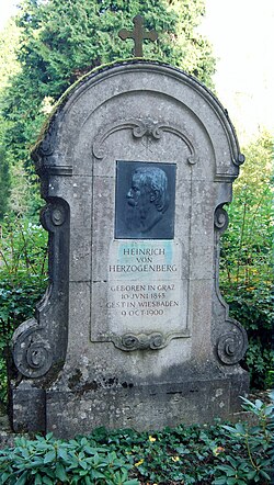 | Grab Heinrich von Herzogenbergs (Nordfriedhof Wiesbaden) | Eigenes Werk Originaltext : eigenes Photo | amras.wi | Datei:Grab Heinrich von Herzogenbergs.JPG | |