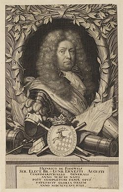 - A la gloire immortelle de Son Excellence, Monsieur Henry de Podewils, premier Conseiller privé de Guerre & Marêchal General de l'Armée de S. A. Elect. de Brunsuic & Lunebourg, Gouverneur de Hannover. Mort le 16. Juillet 1696. Hannover 1696