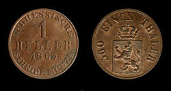 Im Kurfürstentum Hessen wurde der Silbergroschen in 12 Heller eingeteilt, so dass der Heller dem preußischen Pfennig gleich war. Dreiheller waren kupferne 1½-Pfennig-Stücke, die im Sachsen-Gothaischen geprägt wurden.