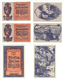 Von 1919 bis 1924 war das Liechtensteiner Notgeld in Umlauf. Deren Nominal lautete auf Heller.