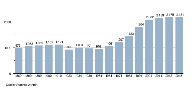 - ↑ Statistik Austria: Bevölkerung nach dem Religionsbekenntnis und Bundesländern 1951 bis 2001 (abgerufen am 2. Oktober 2013)