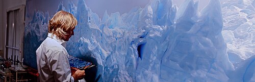 2017 beginnt er sein bisher größtes Gemälde. Auf einer 2 × 12 Meter großen Leinwand malt er den bekannten Perito-Moreno-Gletscher.