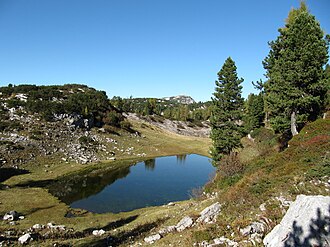 | Henarsee (1691m) gegen Kl. Woising (1879m) | Eigenes Werk | Limnologus | Datei:Henarsee.JPG | |
