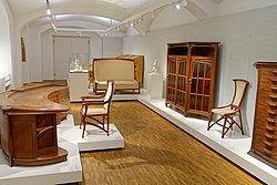 Exhibit in the Hessisches Landesmuseum Darmstadt - Darmstadt, Germany. As a utilitarian object, this exhibit is NOT subject to copyright laws. Instead it is subject to Industrial Design Rights; see Industrial Design Right for more information. If this object was ever covered by a design patent, that patent has long since expired, and thus this image is in the public domain. | Eigenes Werk | Daderot | Datei:Furniture from the Revue Blanche, by Henry van de Velde, 1899, various woods, cotton - Hessisches Landesmuseum Darmstadt - Darmstadt, Germany - DSC00674.jpg | |