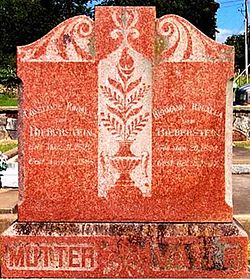 | Grabstein des Hermann Ferdinand Rogalla vn Biebestein (1824-1907) und seiner 2. Ehefrau Constanze, geb. Rogalla von Bieberstein (1826-1908) in Fredericksburg (Texas) , USA. | Kuno Rogalla von Bieberstein, Hamburg | R.v.B. Family Member, USA | Datei:Hermann-Constanze-Rogalla-Bieberstein-Grab.jpg | |