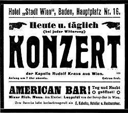 Hermann-Leopoldi-Annonce, Baden bei Wien (1913) | Badener Zeitung | ehem. Hotel Stadt Wien , Baden | Datei:Hermann-Leopoldi-Annonce-Baden-(1913).jpg |