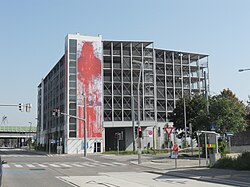 Das Parkhaus bei der Donaumarina. Die Schüttdekoration stammt von Hermann Nitsch. | Eigenes Werk | Maclemo | Datei:Parkhausdonaumarina.JPG | |