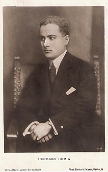 | Portrait of Austrian stage and film actor Hermann Thimig (1890–1982) by Becker & Maass, Berlin, on a postcard from the Hermann Leiser publishing house | European Film Star Postcards blog. | Becker & Maass / Marie Boehm | Datei:Hermann Thimig 1918.jpg | |