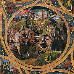 Verwundung Markgraf Ernsts in der Schlacht an der Unstrut, Babenberger Stammbaum, um 1490, Stift Klosterneuburg