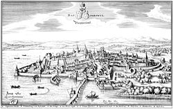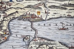 | Topographia Helvetiae, Rhaetiae, et Valesiae . Das ist/ Beschreibung unnd eygentliche Abbildung der vornehmsten Stätte und Plätze in der Hochlöblichen Eydgenossschafft / Graubündten / Wallis / und etlicher zugewandten Orthen: In dieser andern Edition mit sonderm fleiß durchgangen/ und von virgen Fehlern corrigirt / vermehrt und gebessert. Franckfurt am Mayn 1654. | Matthäus Merian | Datei:Merian Rapperswil 1637.jpg | ||
