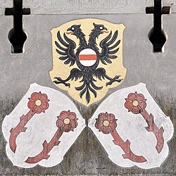 | Rapperswil (SG) : Stadtbefestigung am Endingerhorn, Wappenschilde von Habsburg und Rapperswil. | Eigenes Werk | Roland zh | Datei:Rapperswil - Endiingerhorn Wappen.jpg | |
