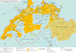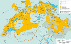 | Die konfessionelle Teilung der schweizerischen Eidgenossenschaft um 1530 durch die Reformation | Eigenes Werk | Marco Zanoli; ( sidonius 20:45, 11 May 2007 (UTC)) | Datei:Religion map of Switzerland in 1530 - de.png | |