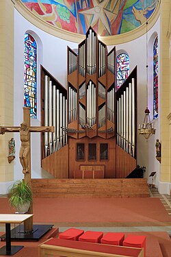1975 wurde der Hauptaltar und die Kanzel entfernt, um Platz für die neue Orgel zu schaffen.