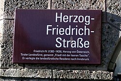 Die Herzog-Friedrich-Straße ist die zentrale Straße durch die Innsbrucker Altstadt. Sie ist nach Herzog Friedrich IV. „mit der leeren Tasche“ benannt.