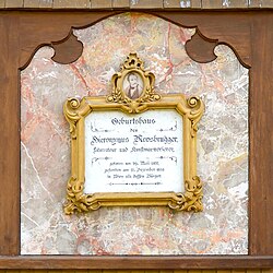 | Hieronymus Moosbrugger - Memorial tablet | Eigenes Werk | Pobpob | Datei:Hieronymus Moosbrugger, Gedenktafel am Geburtshaus in Schoppernau.jpg |