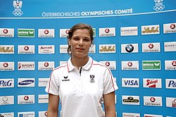 | Die Judoka Hilde Drexler bei der Ausgabe der offiziellen Kleidung der österreichischen Olympiamannschaft für die Sommerspiele 2012 in London ( Marriott - Wien ). | Eigenes Werk | Manfred Werner - Tsui | Datei:Austrian Olympic Team 2012 a Hilde Drexler 02.jpg | |