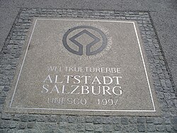 | The UNESCO World Heritage Logo for the Old Town of Salzburg, Austria | Eigenes Werk | Nem80 | Datei:Salzburg UNESCO World Heritage.JPG | |