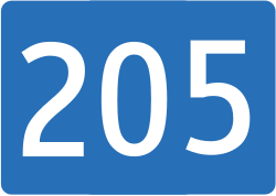 | Sign of Bundesstrasse 205 in Austria | Straßenverkehrszeichenverordnung (StVZVO), BGBl. 1998 II 1205-1227, 1217. | Lakky | Datei:B205-AT.svg | |