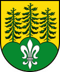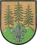 - „In goldenem Schild auf grünem mit einer silbernen Lilie belegten Dreiberg drei grüne Fichten.“