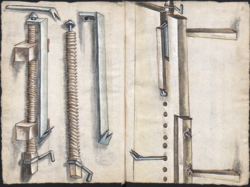 | F. 7v & 8r, Werkbank | https://jbc.bj.uj.edu.pl/dlibra/doccontent?id=258834 | Martin Löffelholz von Kolberg | Datei:Codex Loeffelholz F 7v & 8r - workbench.png | |