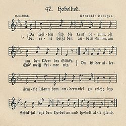 | Das Hobellied aus Ferdinand Raimunds Verschwender (Noten und erste Strophe) | Josef Pommer: Liederbuch für die Deutschen in Österreich . 5. Aufl., Wien 1905. Nr. 47, S. 70 (Scan) | Text: Ferdinand Raimund / Melodie: Conradin Kreutzer | Datei:Liederbuch fuer die Deutschen in Oesterreich - Hobellied.jpg |