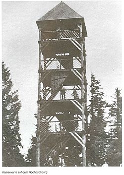 In der Marktchronik von Pabneukirchen heißt es: Am 24. Juli 1898 feierliche Eröffnung der Kaiserwarte am Hochbuchberg (hat Pfarrer Dr. Vinzenz Koberger auf seine Kosten erbauen lassen).[2] Am 1. Juni 1904 schlug ein Blitz in die Kaiserwarte ein und zertrümmerte vier Säulen auf der Nordwestseite und drei Säulen der Südostseite. Daraufhin wurde der Turm rot angestrichen und es wurden Blitzableiter angebracht. Die Kosten hierfür wurden wiederum von Pfarrer Koberger getragen.[3] 2008 wurde die Errichtung einer „Strudengauwarte“ (Wiedererrichtung der ehemaligen Kaiserwarte) am Hochburgberg diskutiert[4].