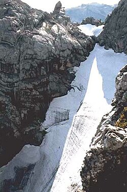 | Der steile Blaueisgletscher gesehen vom Hochkalteranstieg über den Schönen Fleck. | Archiv Günter Seggebäing / German Wikipedia, original upload 29. Mai 2005 by Watzmann de:Bild:Blaueis.jpg | Günter Seggebäing | Datei:Blaueis.jpg | |
