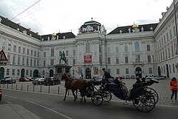Die Hofburg zu Wien, historisch auch Kaiserliche Burg bzw. Wiener Burg,[1] war von 1279 bis 1918 (mit Unterbrechungen) die Residenz der Habsburger in Wien. Sie ist heute Sitz des Bundespräsidenten, des Bundesdenkmalamtes, der Österreichischen Nationalbibliothek und mehrerer Bundesmuseen.